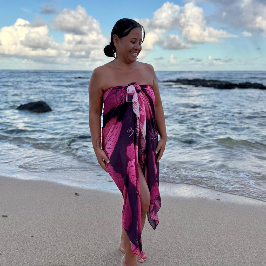 The soft and attractive Pareo in our beautiful Hibiscus design in shades of Burgundy color. Perfect cover-up to wear at the beach or just lounge around in.